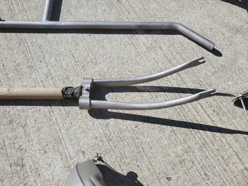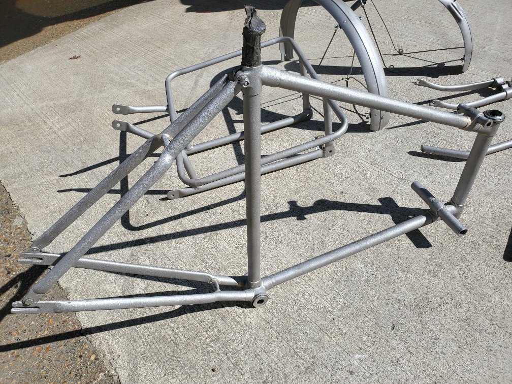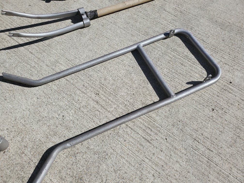 Then came the shotblasting to reveal the excellent condition of the frame under the original thick paint.